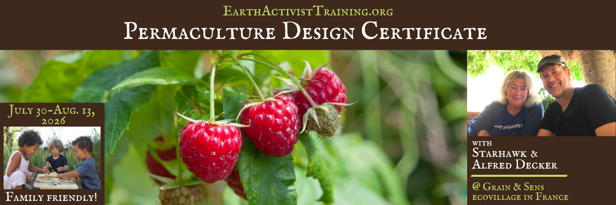 Earth Activist Training and 12P Permaculture Design are happy to invite you to a two-week intensive Permaculture Design Course (PDC), offering the internationally-recognised 72-hour permaculture curriculum with an additional focus on social permaculture, organizing tools, and spirit. This will be the third training Starhawk and Alfred have offered in Europe that is family-friendly (bring the kids!) and will be live translated between English and French. Come and share a life-changing experience with an intercultural mix of participants and a pair of dynamic and international permaculture educators…and watch this summer’s solar eclipse!